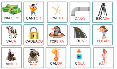 • Palavras com dígrafos, perfeitas para ampliar a consciência fonológica.
